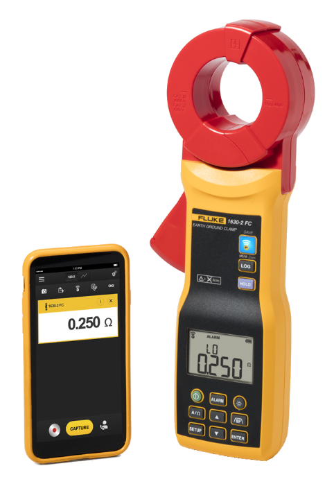 Erdschleifen- und Leckstrommesszange fur spieslose, schnelle und sichere Messungen des Erdschleifenwiderstands und des Erdschlussstroms (Lecktroms) im Innen- und Ausenbereich. Fluke 1630-2 FC misst mit der Doppelzange Erdschleifenwiderstande an mehrfach geerdeten Systemen. Dadurch entfallen die gefährliche und zeitraubende Aufgabe, die parallelen Erdverbindungen zu trennen, und die Suche nach geeigneten Positionen für Erdspiesse. Sie können auch Erdungsmessungen an schwierigen Stellen innerhalb von Gebäuden, an Strommasten und überall dort vornehmen, wo keine Erdspiesse ins Erdreich gesteckt werden können. Dieses Prüfverfahren mit der speziell entwickelten Zange der Fluke 1630-2 FC besteht aus einer zweistufigen Messung um den Erdleiter oder die Sammelschiene herum. Es werden keine Erdspiesse verwendet. Eine bekannte Spannung wird durch die Quelle in der Zange induziert, und der Strom wird vom Sensor in der Zange gemessen. Das Messgerat ermittelt den Erdschleifenwiderstand für diesen Teil des Erdungssystems automatisch. Fluke Connect© Wireless-System Fluke 1630-2 FC ist funktioneller Teil des Fluke Connect© Wireless- Systems. Fluke Connect© übermittelt die Messdaten der Zange drahtlos zu einer App auf dem Smartphone oder Tablet. Die App zeigt die Messwerte der Erdwiderstandsmessung auf dem Display des Smartphones oder Tablets an. Die Messwerte, GPS-Position sowie Bilder können über das Smartphone in der Fluke Connect Cloud gespeichert und für Andere freigegeben werden.